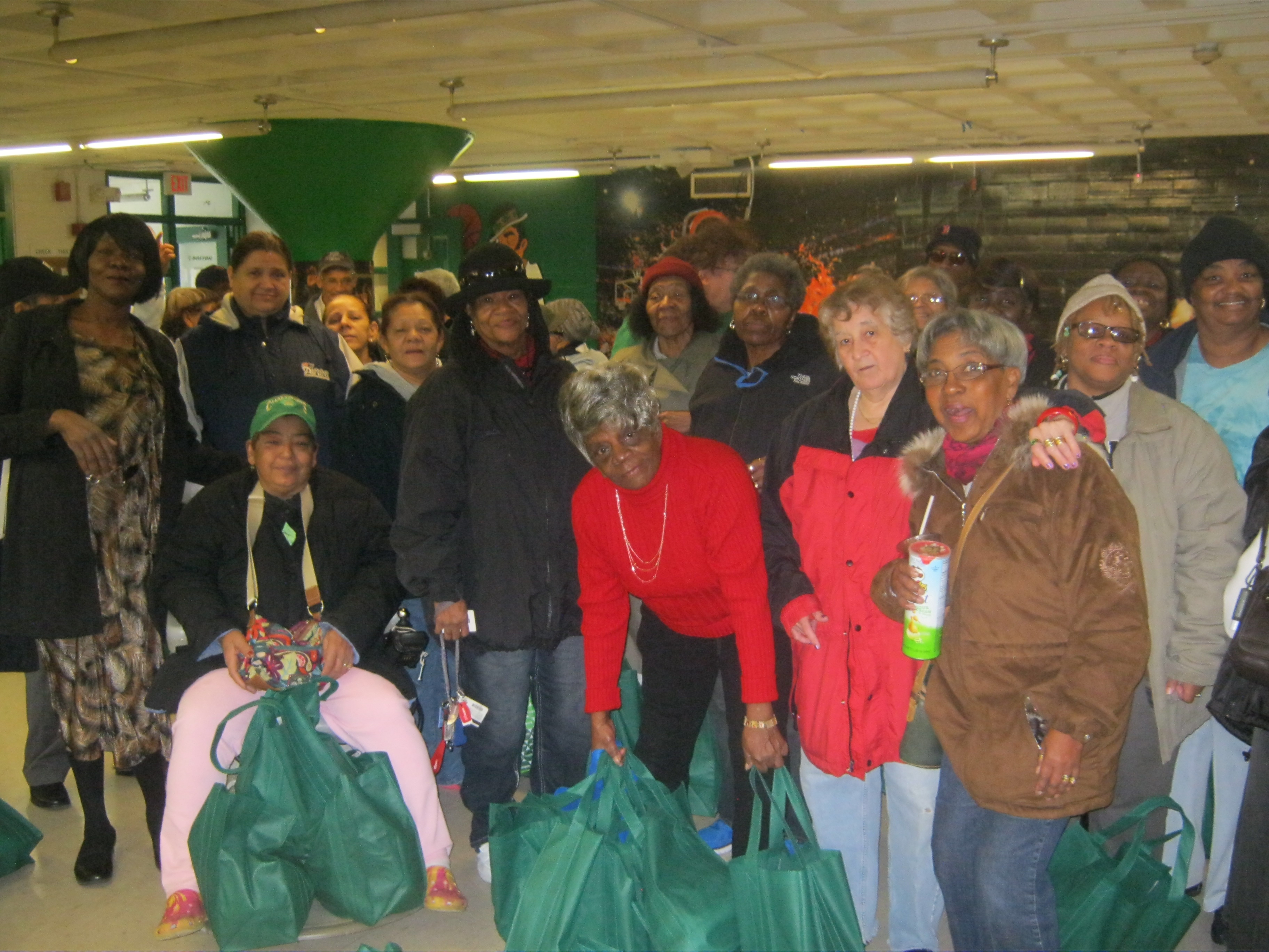 Senior citizens from Mission Main, Mission Park, Back of the Hill Apartment and Alice Taylor Homes pick up free Thanksgiving turkeys at the Boston Centers for Youth & Families Tobin Community Center on Tremont Street on Nov. 19. Turkeys for 120 seniors were available thanks to donations and volunteering from New England Baptist Hospital, the Massachusetts College of Pharmacy and Health Sciences, and the offices of state Rep. Jeffrey Sánchez and City Councilor Mike Ross. (Courtesy Photo)