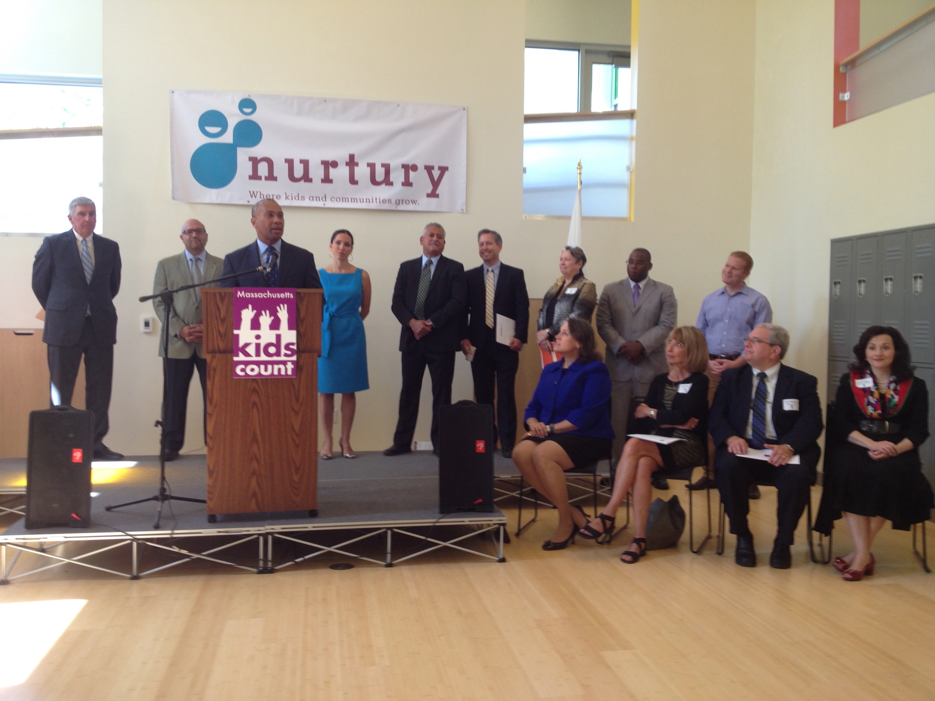 BACK OF THE HILL—Gov. Deval Patrick visited Nurtury Learning Lab in Jamaica Plain’s Bromley-Heath housing development last week to present an annual report on the state of child welfare in the Commonwealth and how that compares to the rest of the country.
